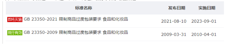 《GB 23350-2021限制商品过度包装要求 食品和化妆品》于2021年8月10日发布,将于2023年9月1日实施